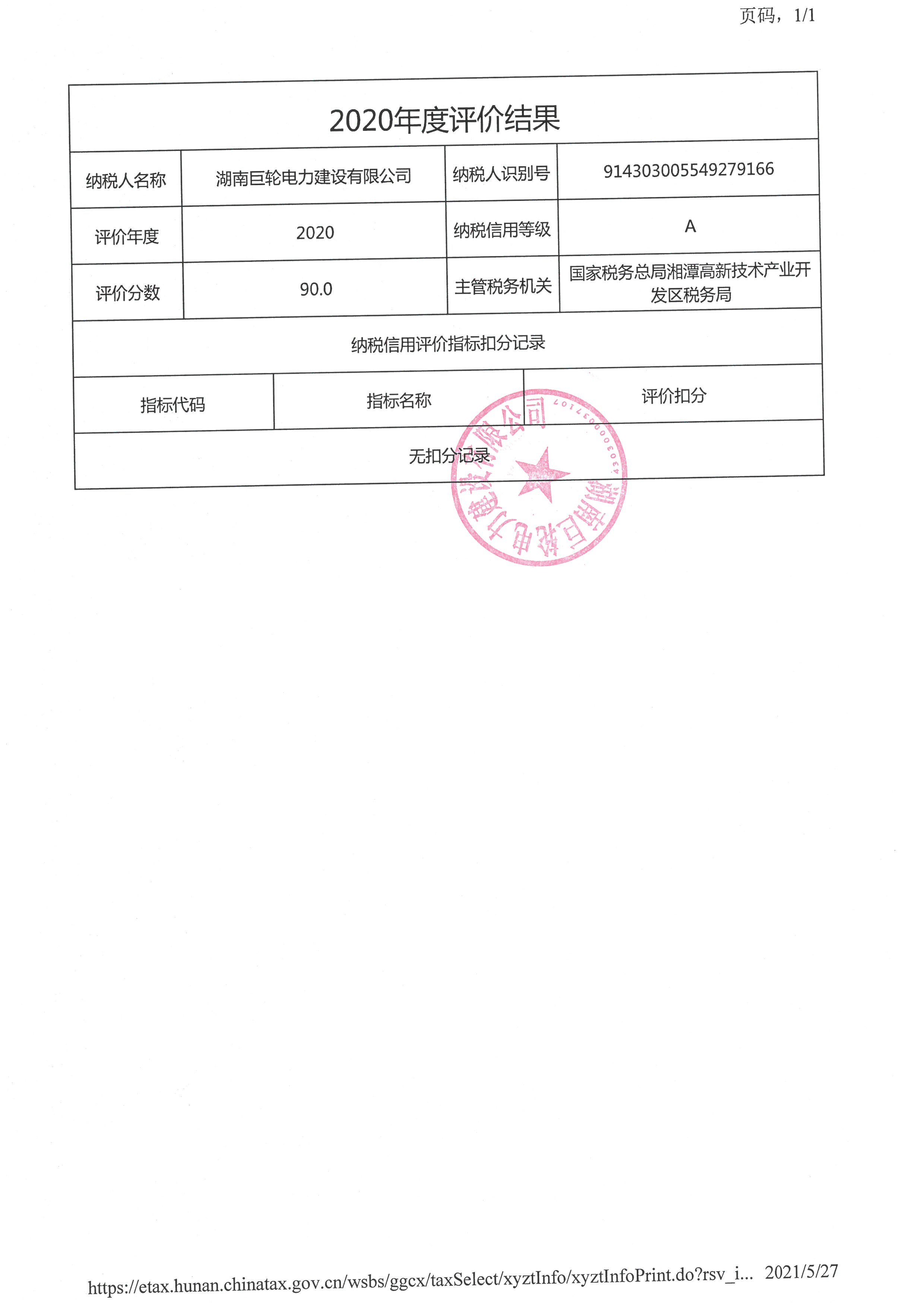 企業(yè)納稅信用等級(jí)報(bào)告: