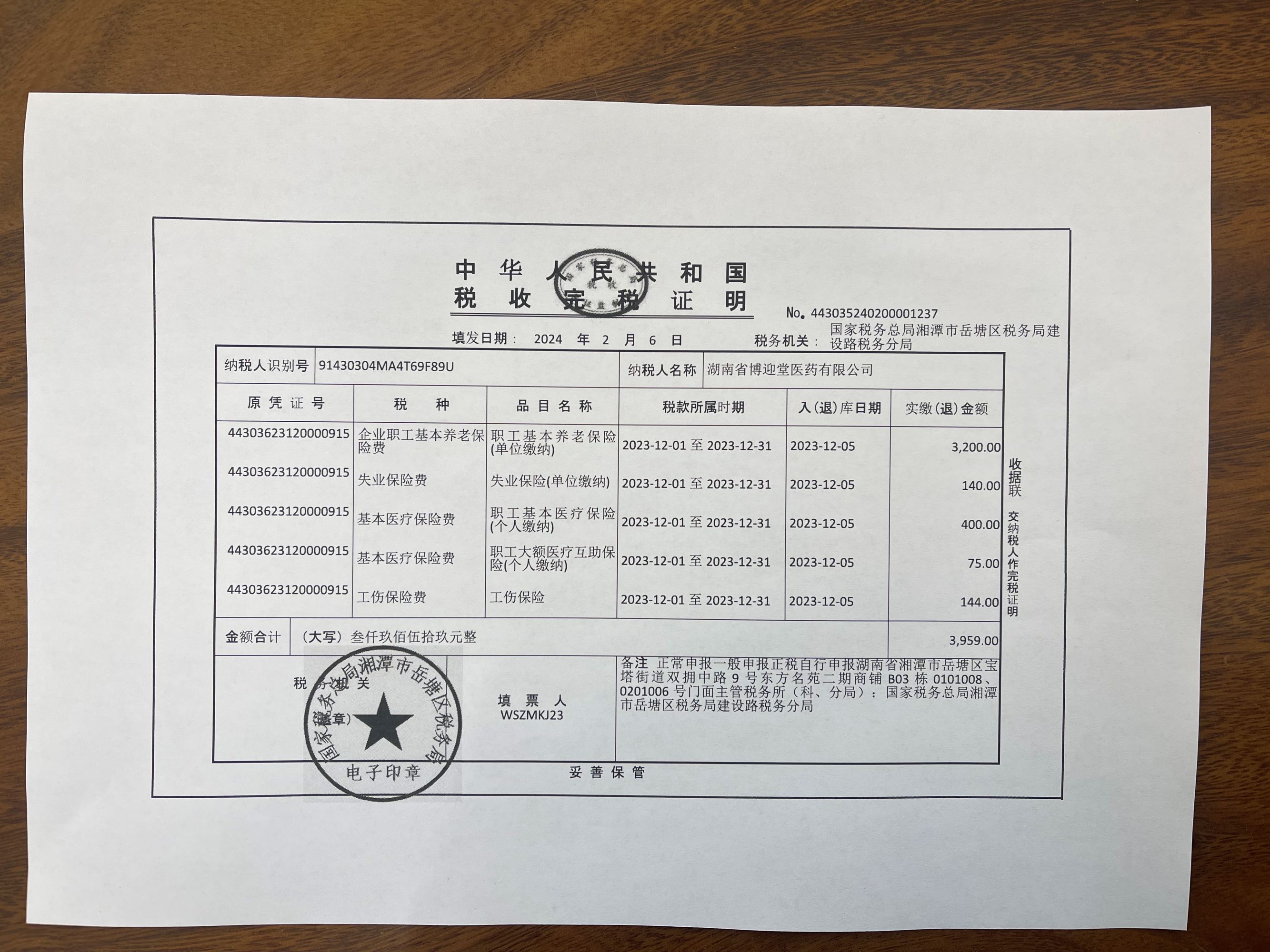 社保繳納證明: