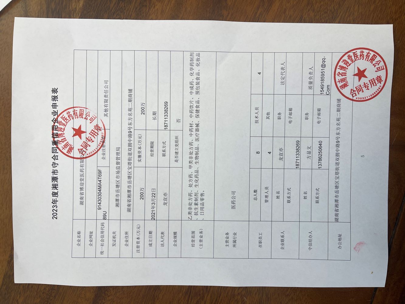 本企業(yè)根據(jù)《湘潭市守合同重信用企業(yè)申報規(guī)定》等編制 2023 年度企業(yè)信用報告書,并保證本報告書內(nèi)容真實、準確、完整。