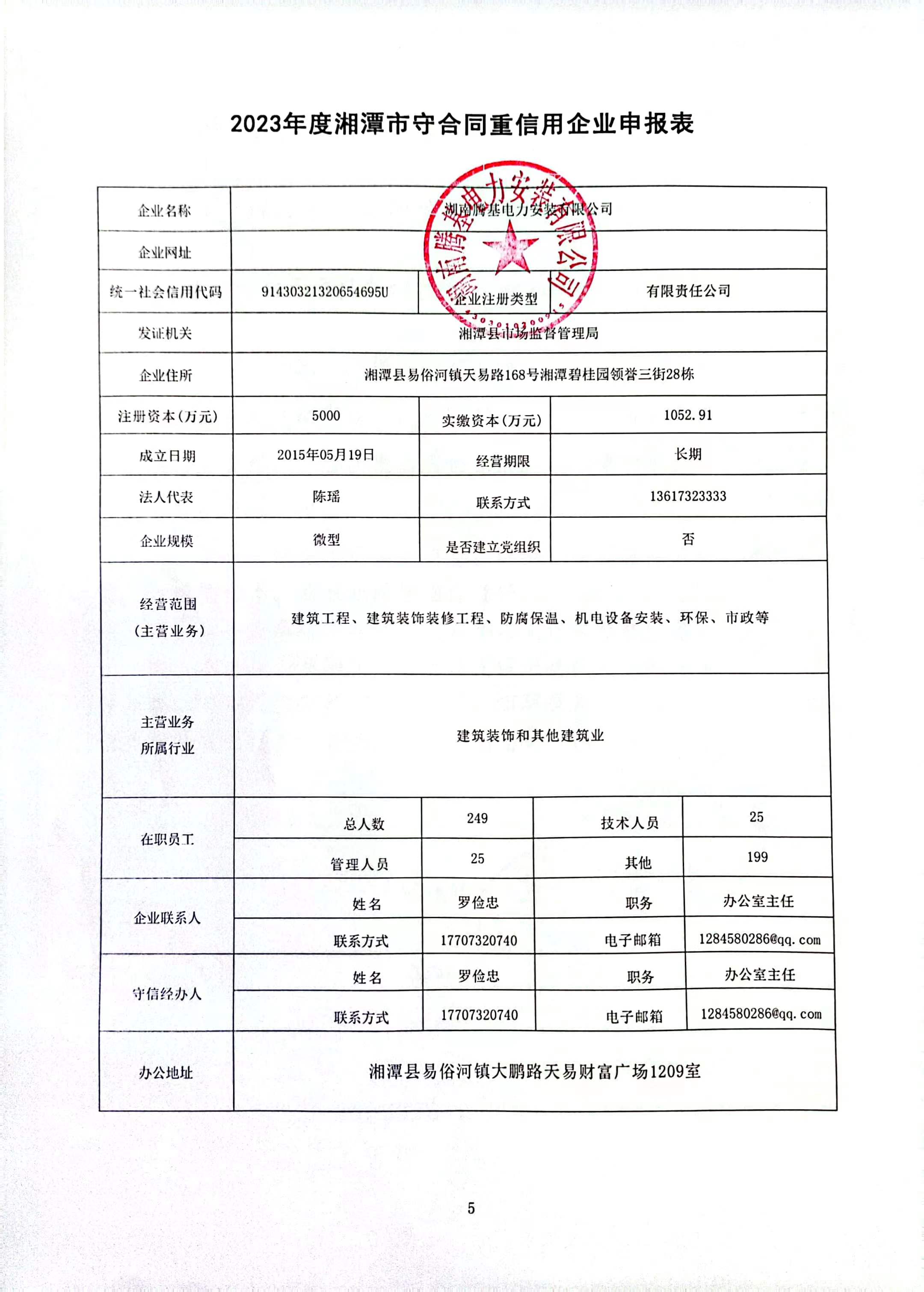 本企業(yè)根據(jù)《湘潭市守合同重信用企業(yè)申報規(guī)定》等編制 2023 年度企業(yè)信用報告書,并保證本報告書內(nèi)容真實、準(zhǔn)確、完整。