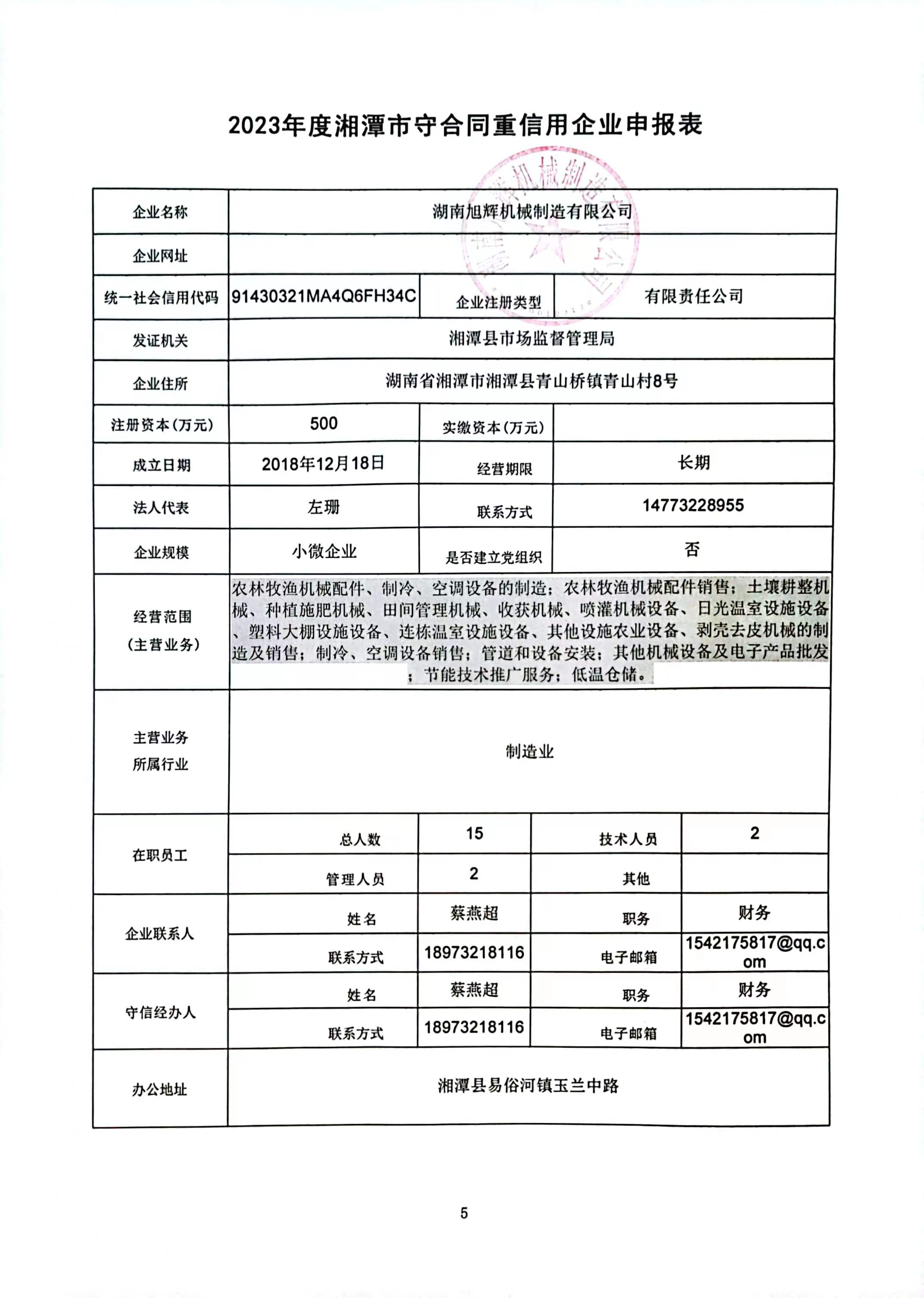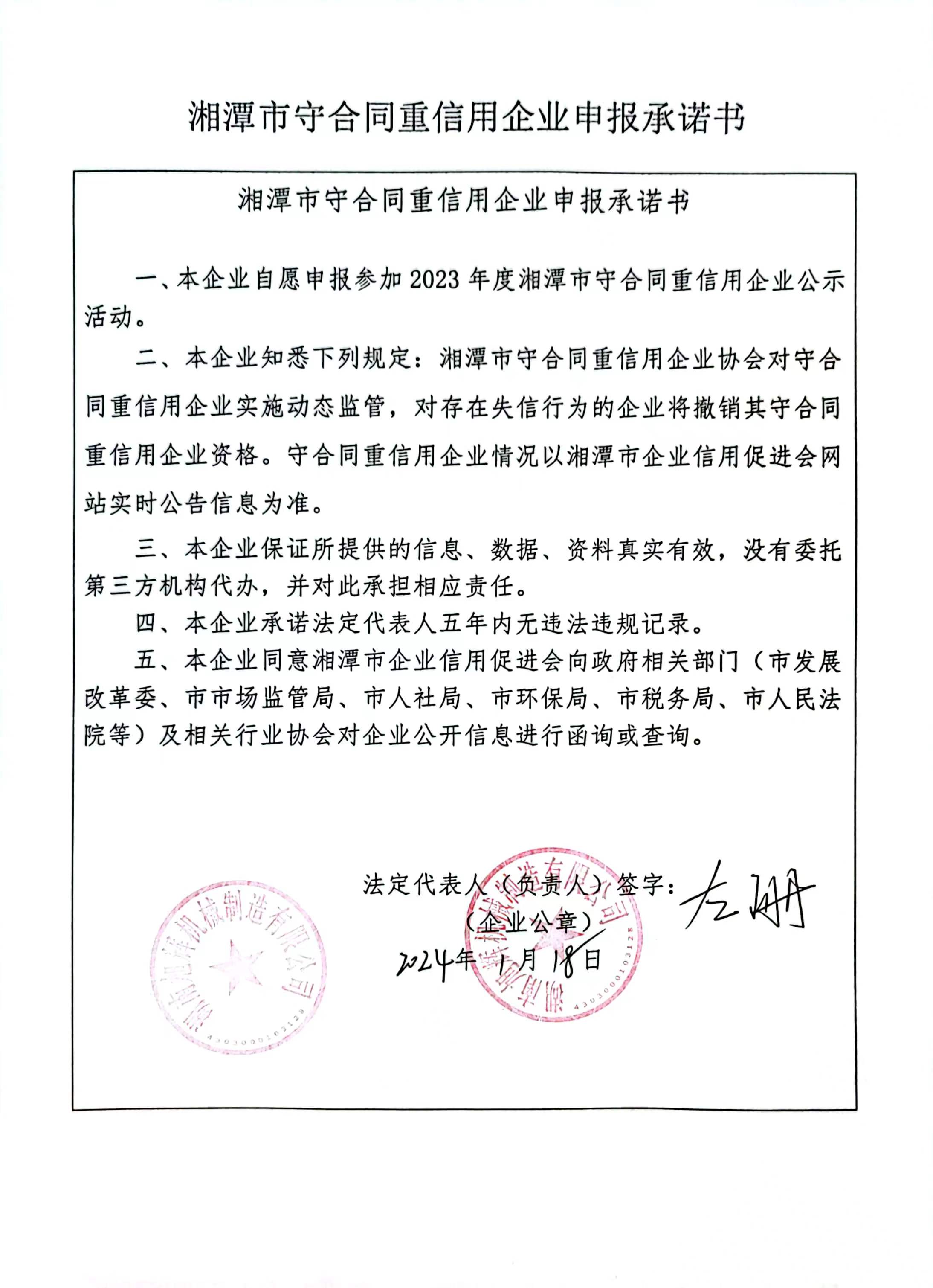 本企業(yè)根據(jù)《湘潭市守合同重信用企業(yè)申報規(guī)定》等編制 2023 年度企業(yè)信用報告書,并保證本報告書內(nèi)容真實、準(zhǔn)確、完整。