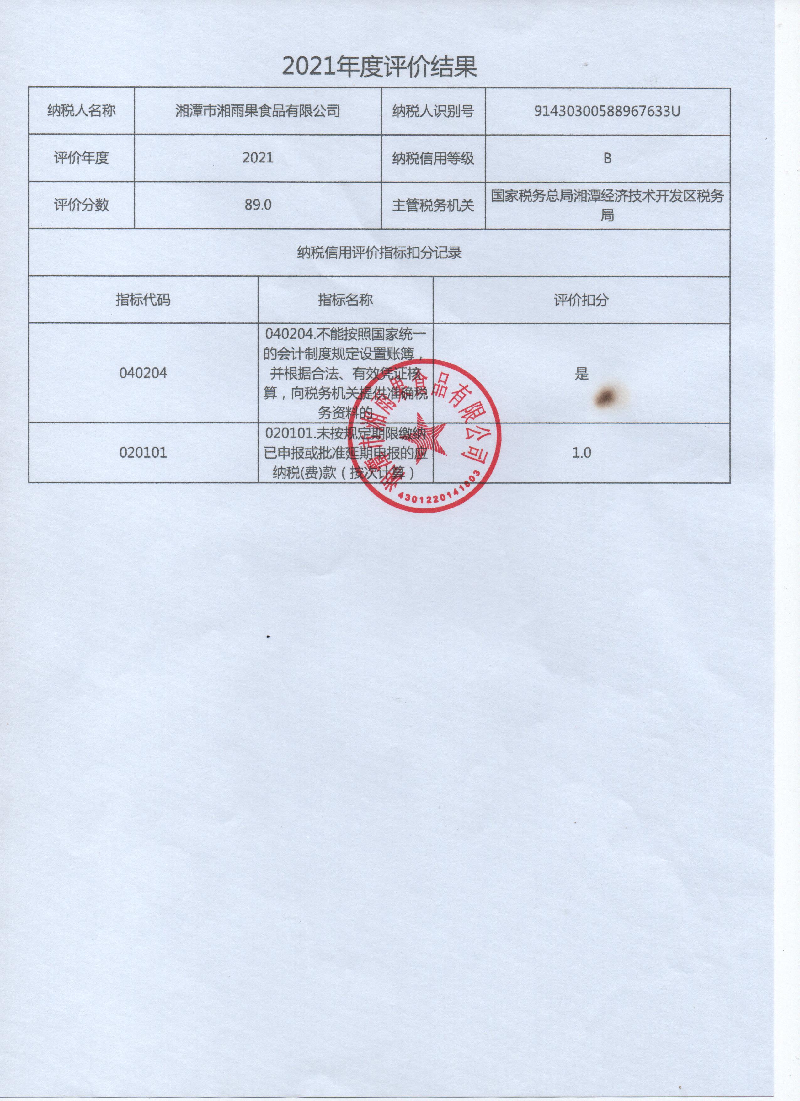 企業(yè)納稅信用等級報(bào)告: