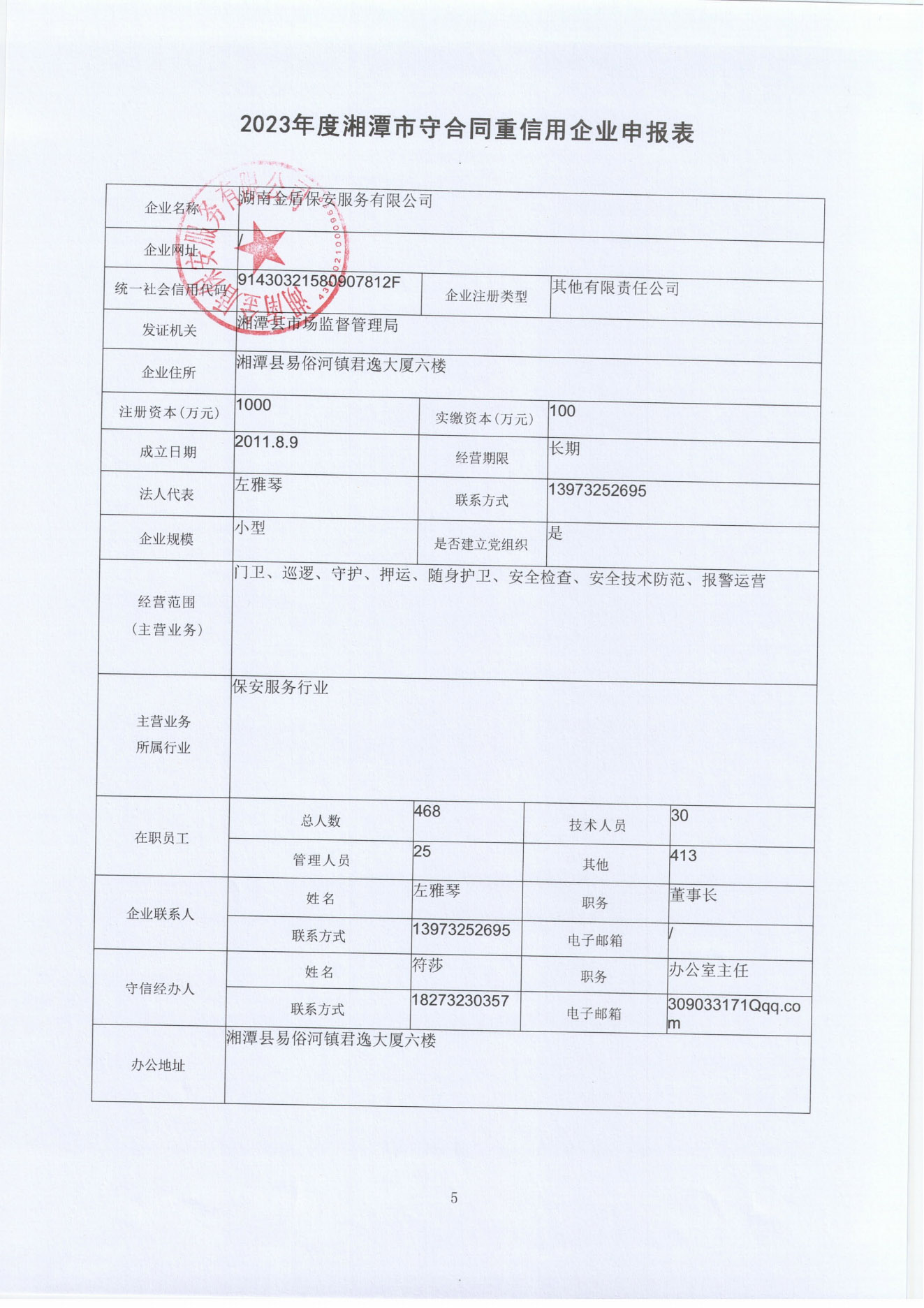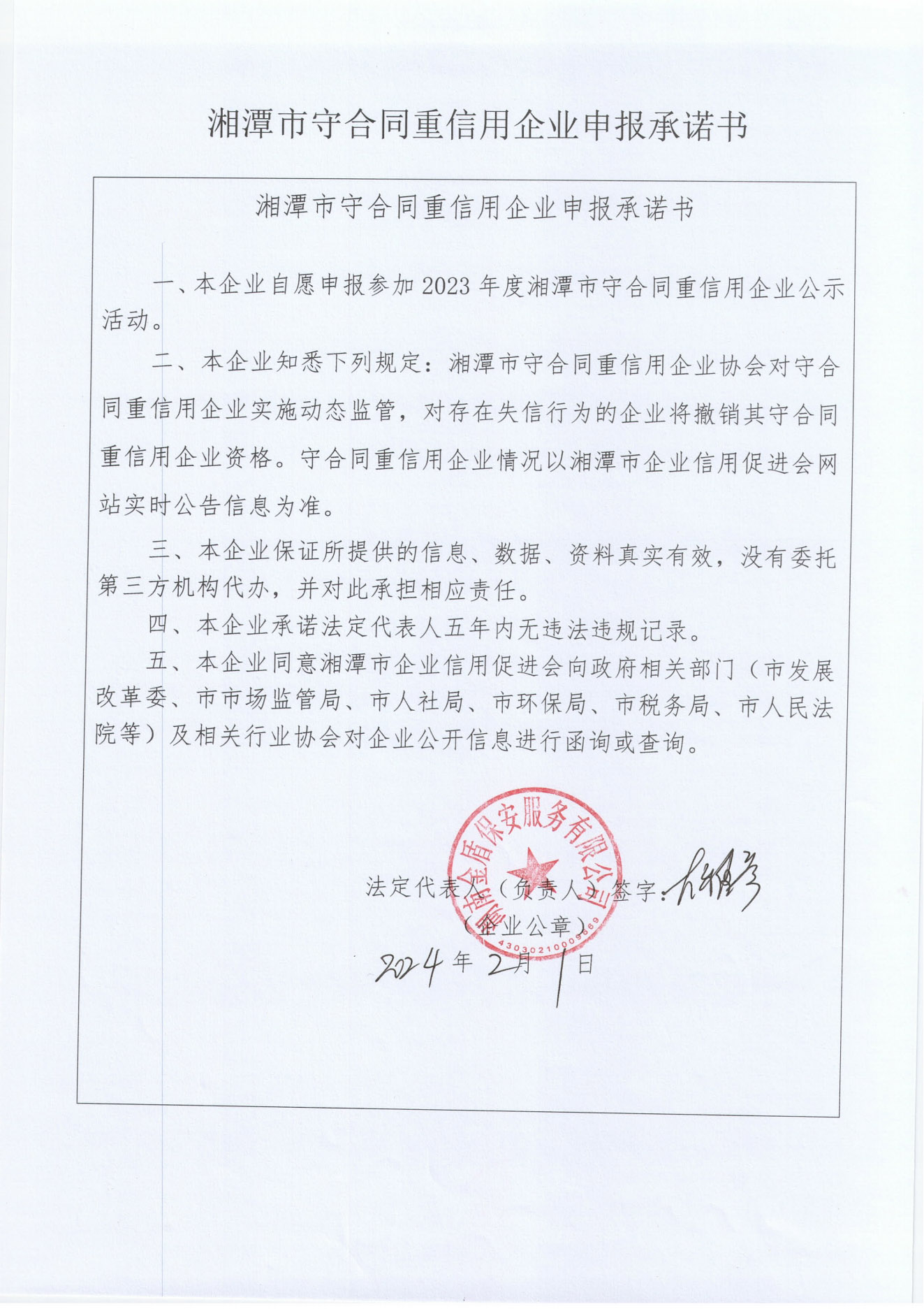 本企業(yè)根據(jù)《湘潭市守合同重信用企業(yè)申報規(guī)定》等編制 2023 年度企業(yè)信用報告書,并保證本報告書內(nèi)容真實、準(zhǔn)確、完整。