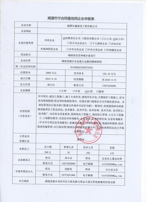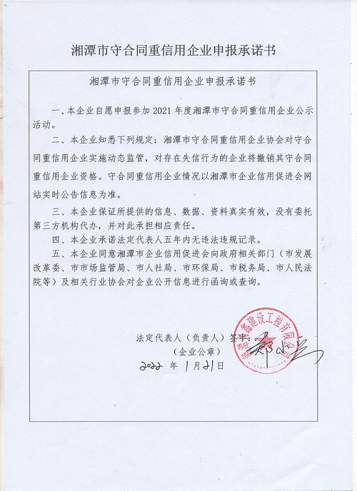 本企業(yè)根據《湘潭市守合同重信用企業(yè)申報規(guī)定》等編制 2021 年度企業(yè)信用報告書,并保證本報告書內容真實、準確、完整。