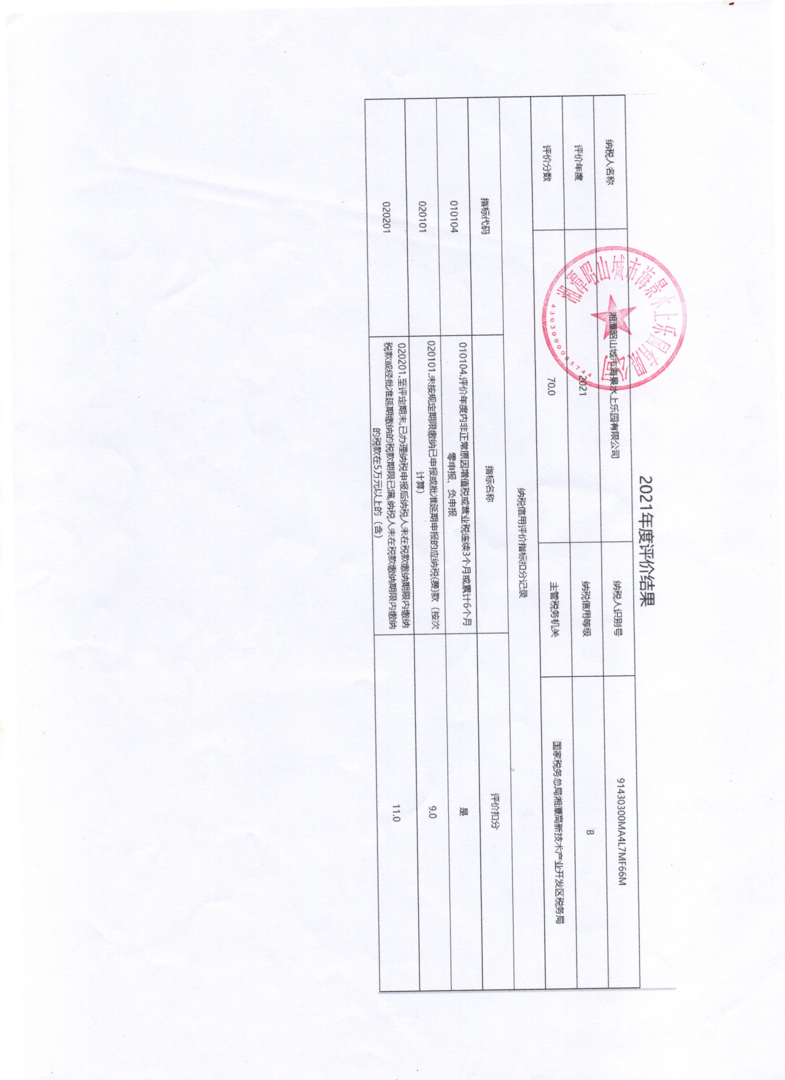 企業(yè)納稅信用等級(jí)報(bào)告: